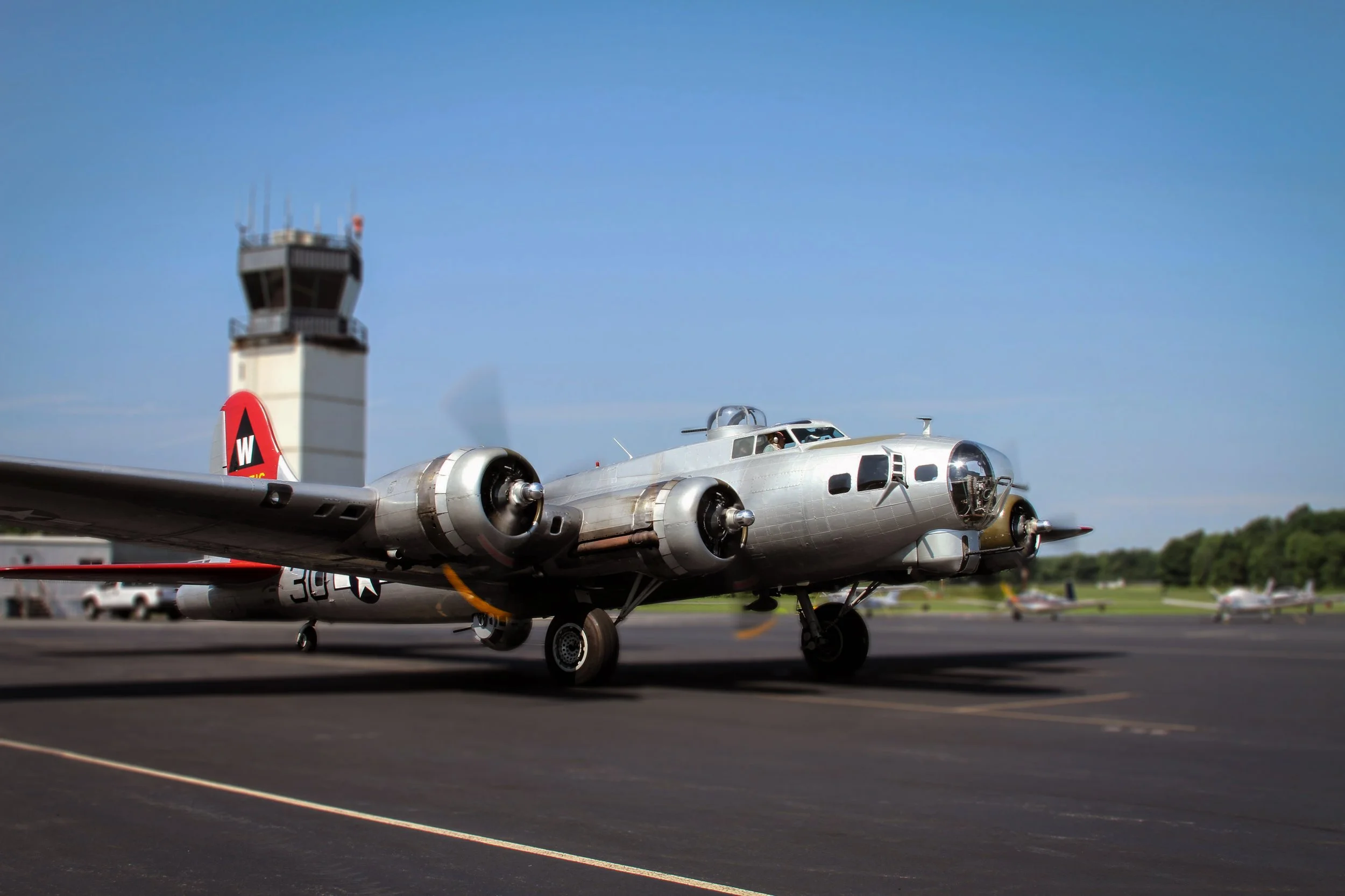 Growing up, we were obsessed with the story of the Memphis Belle. Something about those old bombers — the design, the mission, the crews — always stuck with us. Whenever Aluminum Overcast would visit the local airport, we’d go check it out on the ground, walk through the fuselage, and dream about what it must’ve been like in the air. This time, we weren’t just looking — we were climbing aboard The B-17 “Aluminum Overcast” preparing for takeoff at Essex County Airport.